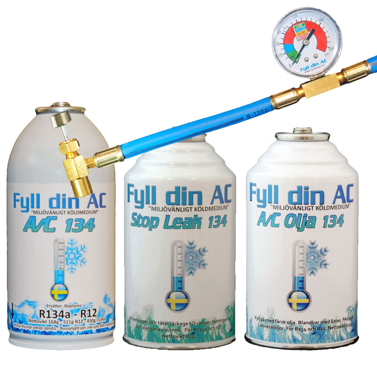 The kit corresponds to about 800 grams of R134A. Our products are more effective than standard HFC and CFC products.